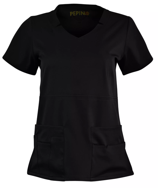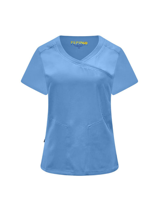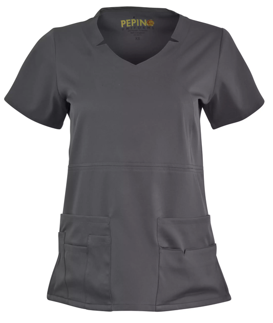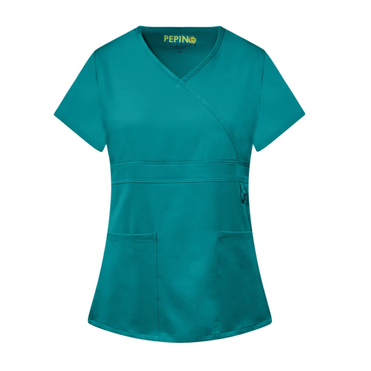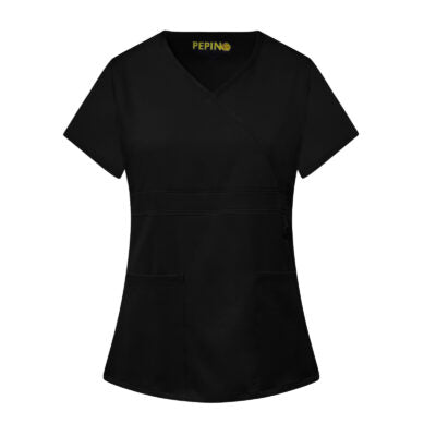Blusa médica con cuello mandarín y detalles fruncidos de Pepino Uniforms