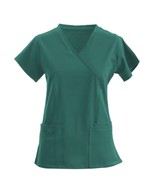 Blusa médica de manga corta con doble bolsillo y cierre a presión en la parte delantera de Adar Universal