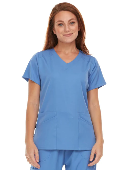 Blusa médica con cuello en V y estampado de mariposas Kendall de Medichic