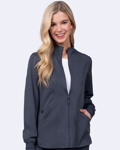 “Ava Therese” reflective flasher on wearer’s left front side seam