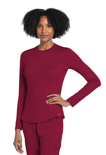 This long sleeve underscrub knit tee is perfect for layering. The classic crew neck looks great under scrub tops on worn on its own. Stylish shirttail hem. Modern Classic fit. Center back length: 24 1/2"