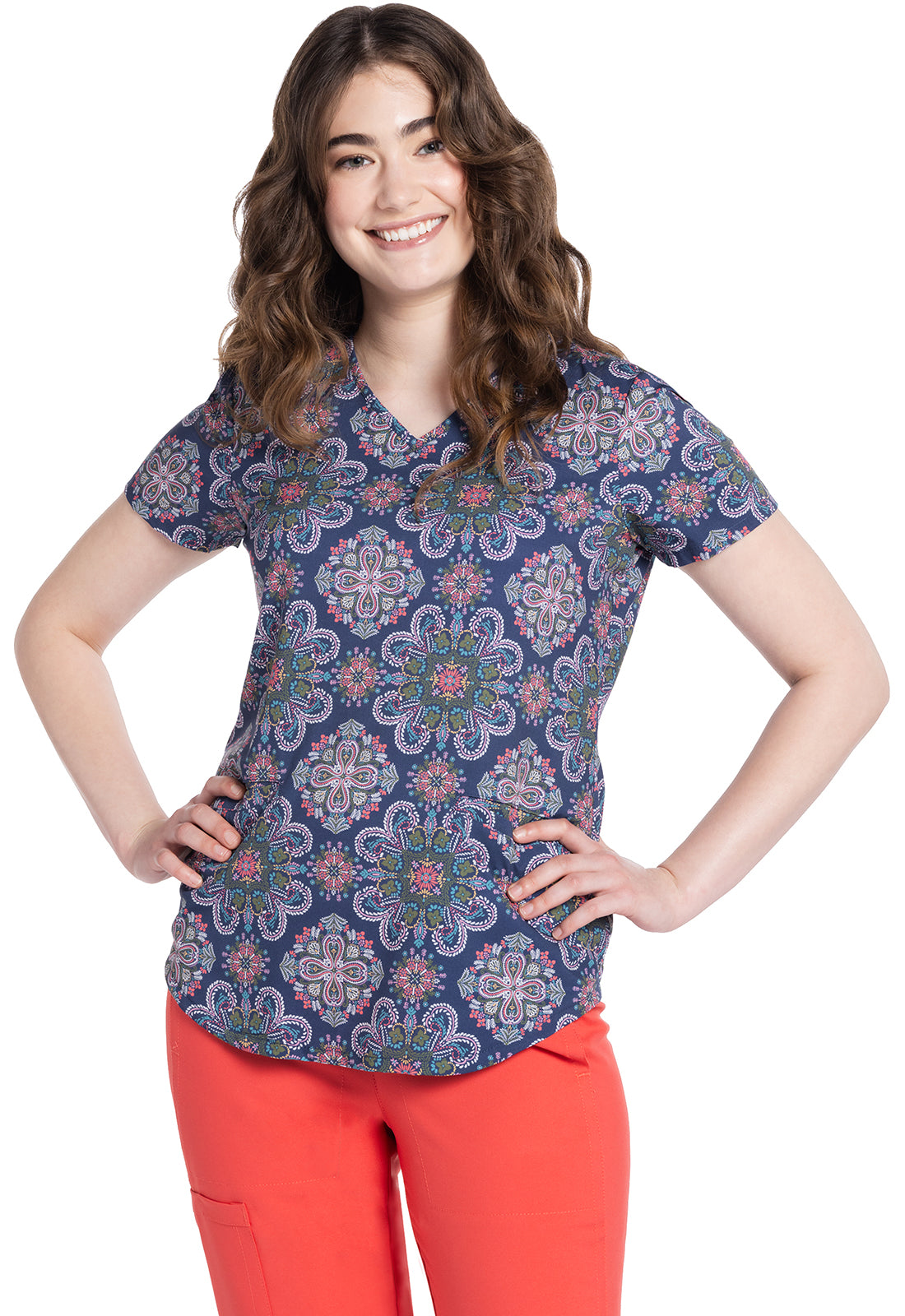 Cherokee Prints Boho Medallion V-Neck Printed Scrub Top
