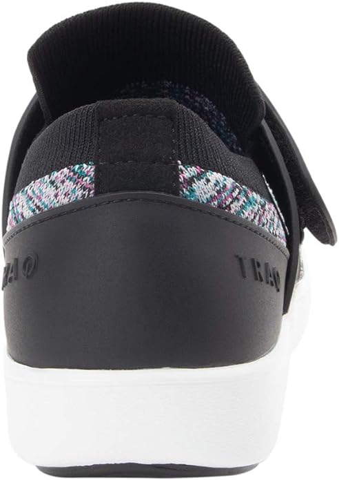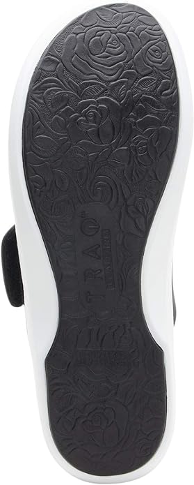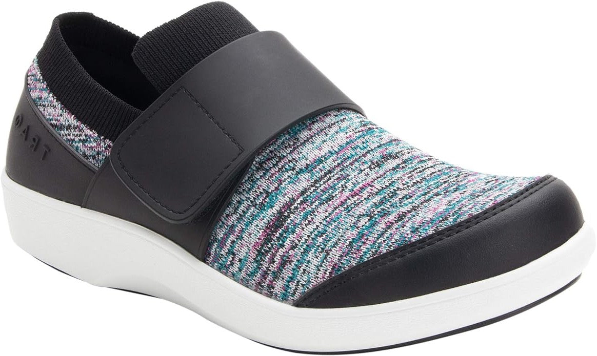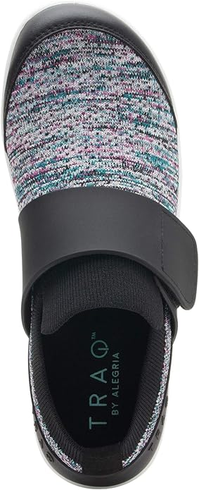 Smart shoe with Q-Chip technology Syncs with the TRAQ by Alegria smartphone phone app for accurate step count Dream Fit knit upper with adjustable hook-and-loop strap Protective mud guard, padded heel counter with removable footbed Slip-resistant and non-marking outsole