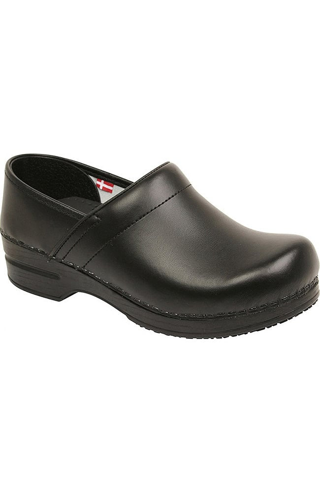 The Aubrey is the Certified Slip Resistant version of our quintessential work clog, the Pro. PU. Made from easy-to-clean black polyurethane-coated leather, the Aubrey has a shock-absorbing polyurethane sole with an extra certified slip-resistant outsole. Perfect for environments that can get a little messy, like healthcare and hospitality.