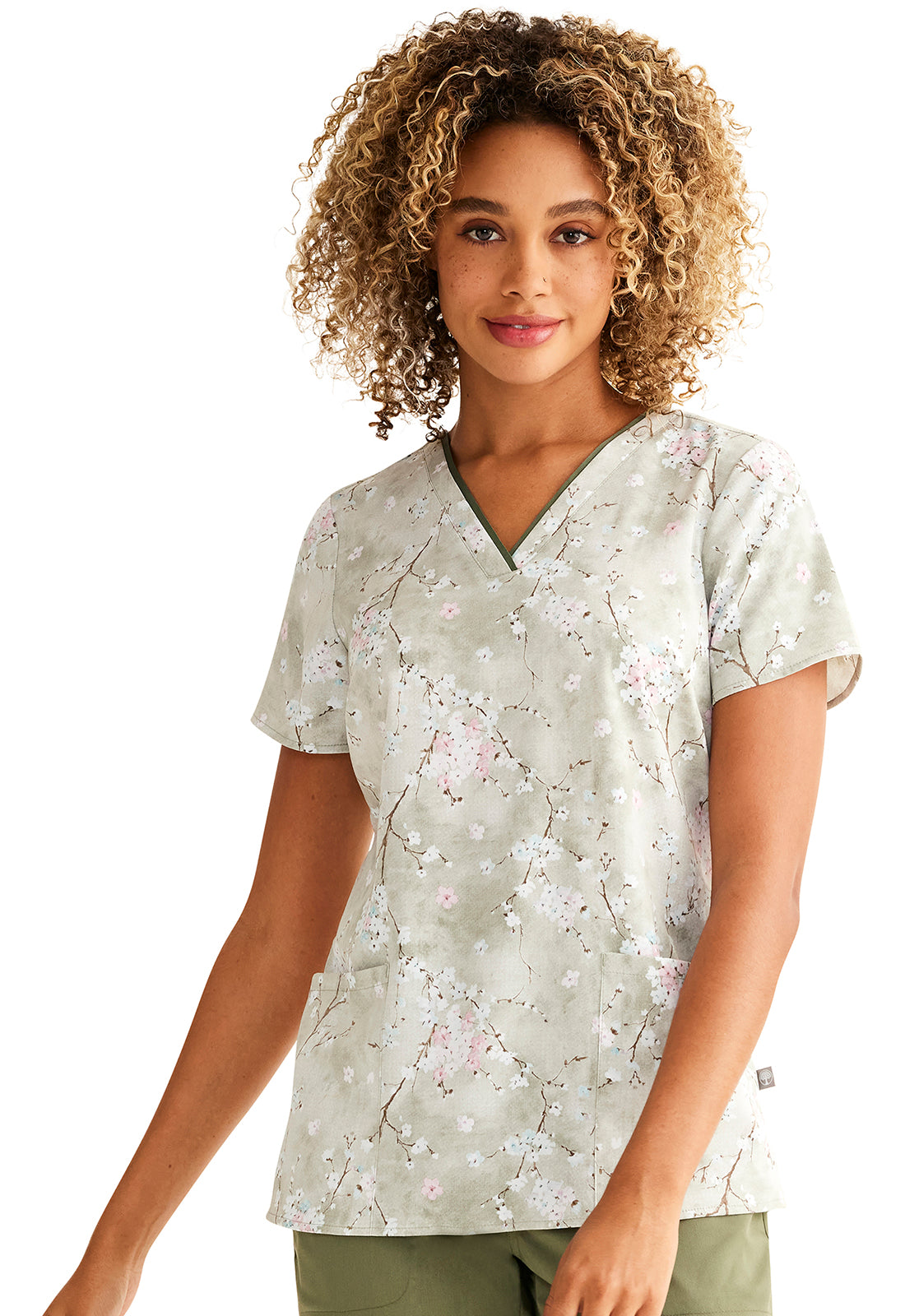 Healing Hands Purple Label Charmed Florals Amanda Printed Scrub Top