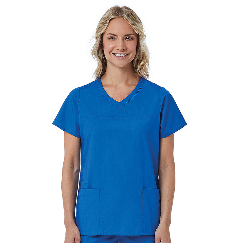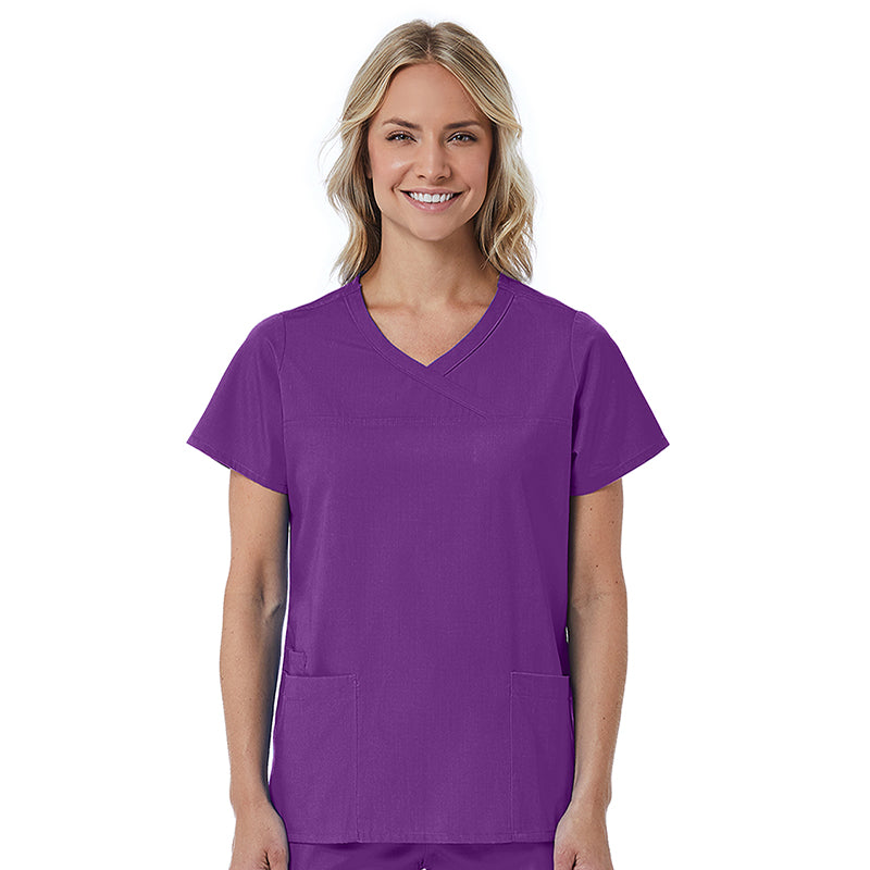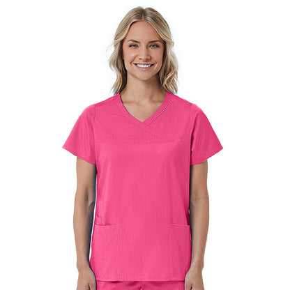 Maevn Red Panda Mock Wrap Scrub Top