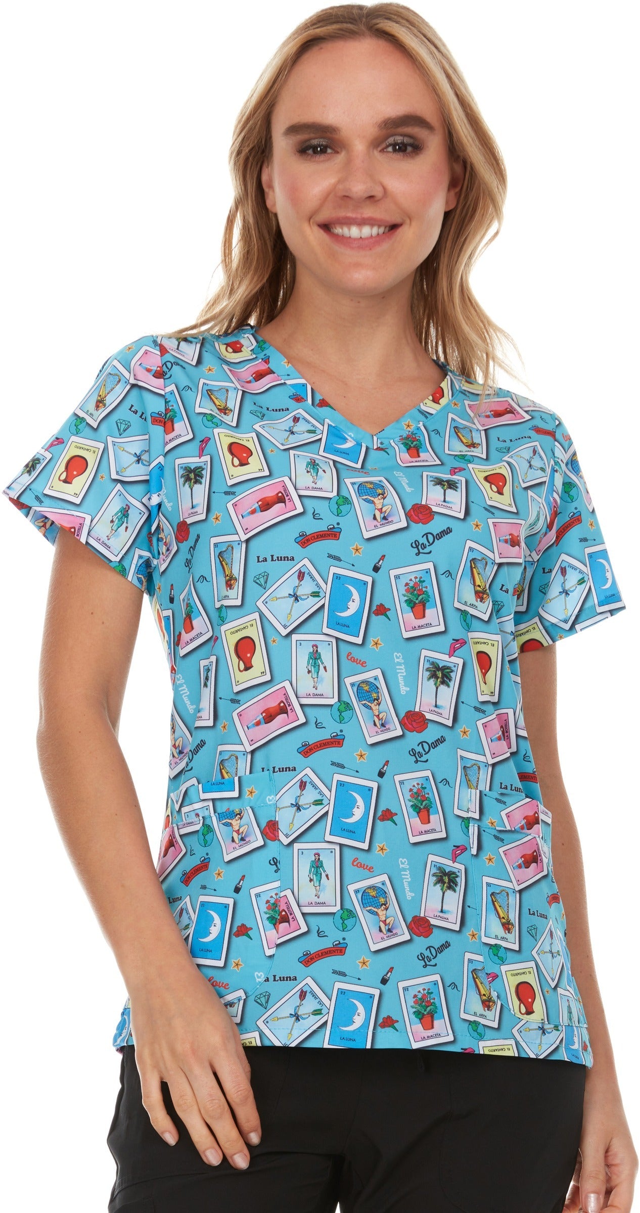 Loteria Don Clemente Isabella La Meceta Printed V-Neck Scrub Top