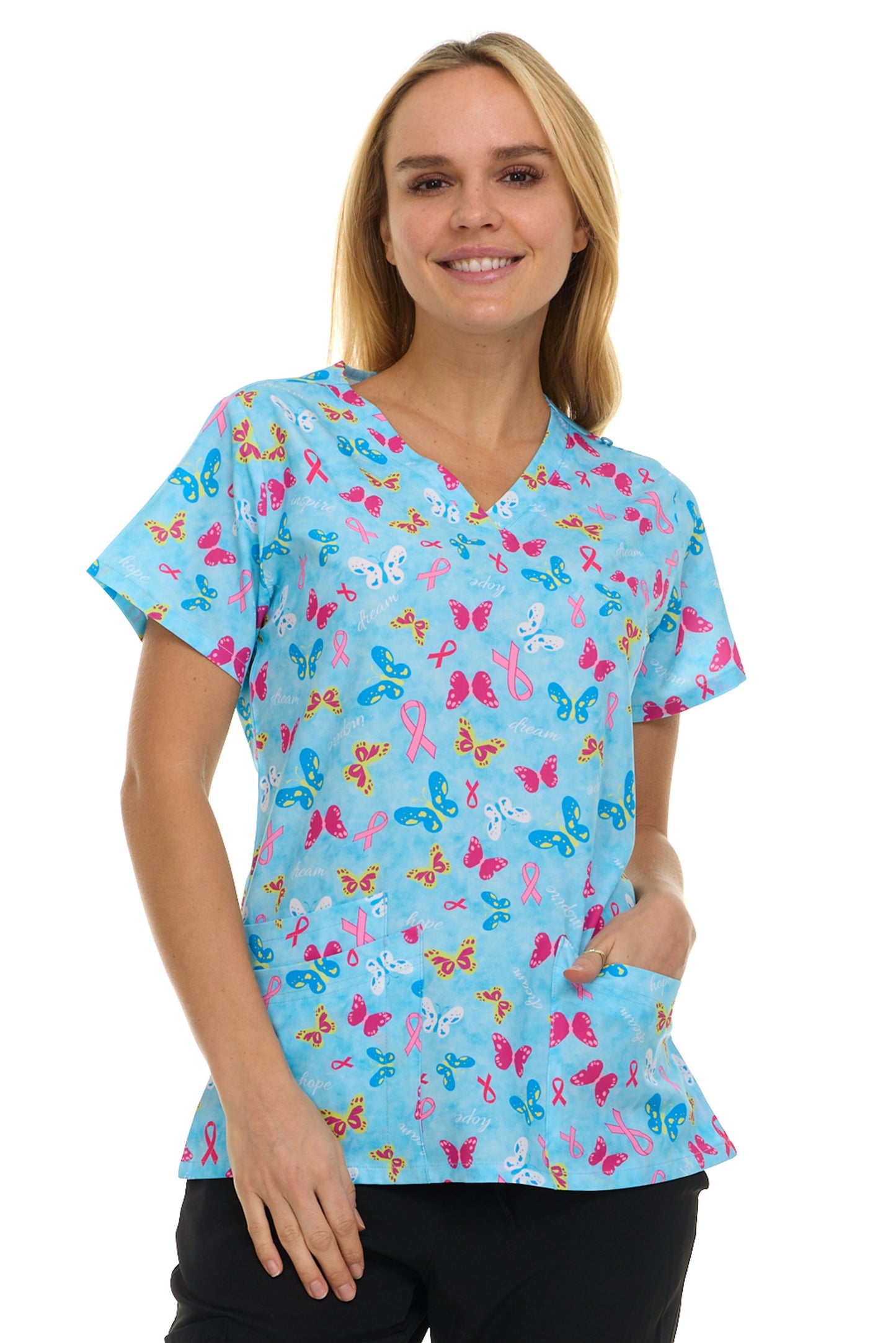 Medichic Kendall Dreams Inspire Printed V-Neck Scrub Top