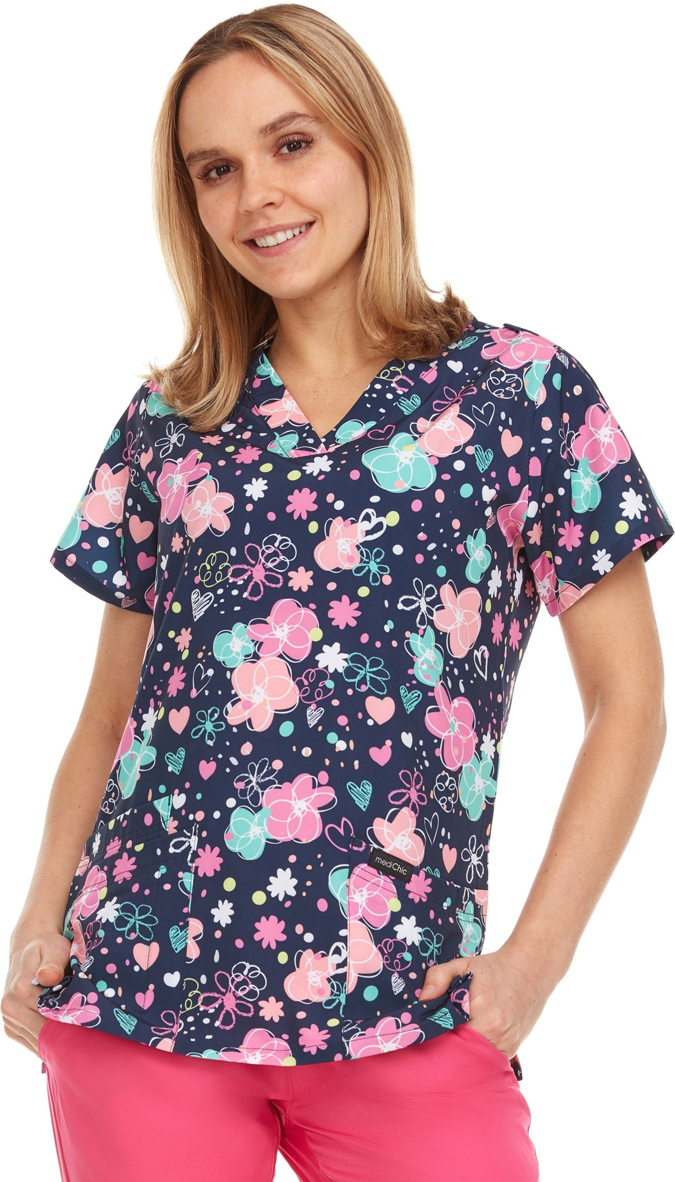Medichic Naomi Bubble Hearts Printed V-Neck Scrub Top