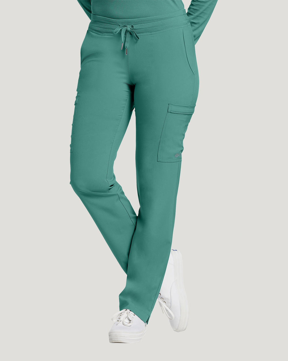 Our White Cross FIT women's straight-leg cargo scrub pants are breathable, fade resistant, offer a 4-way stretch, and are moisture wicking. With a contemporary slim fit that's contoured to conform to your body and complement your shape, these pants have a mid-rise elastic mesh waist with a drawstring for a secure for your most active shifts.