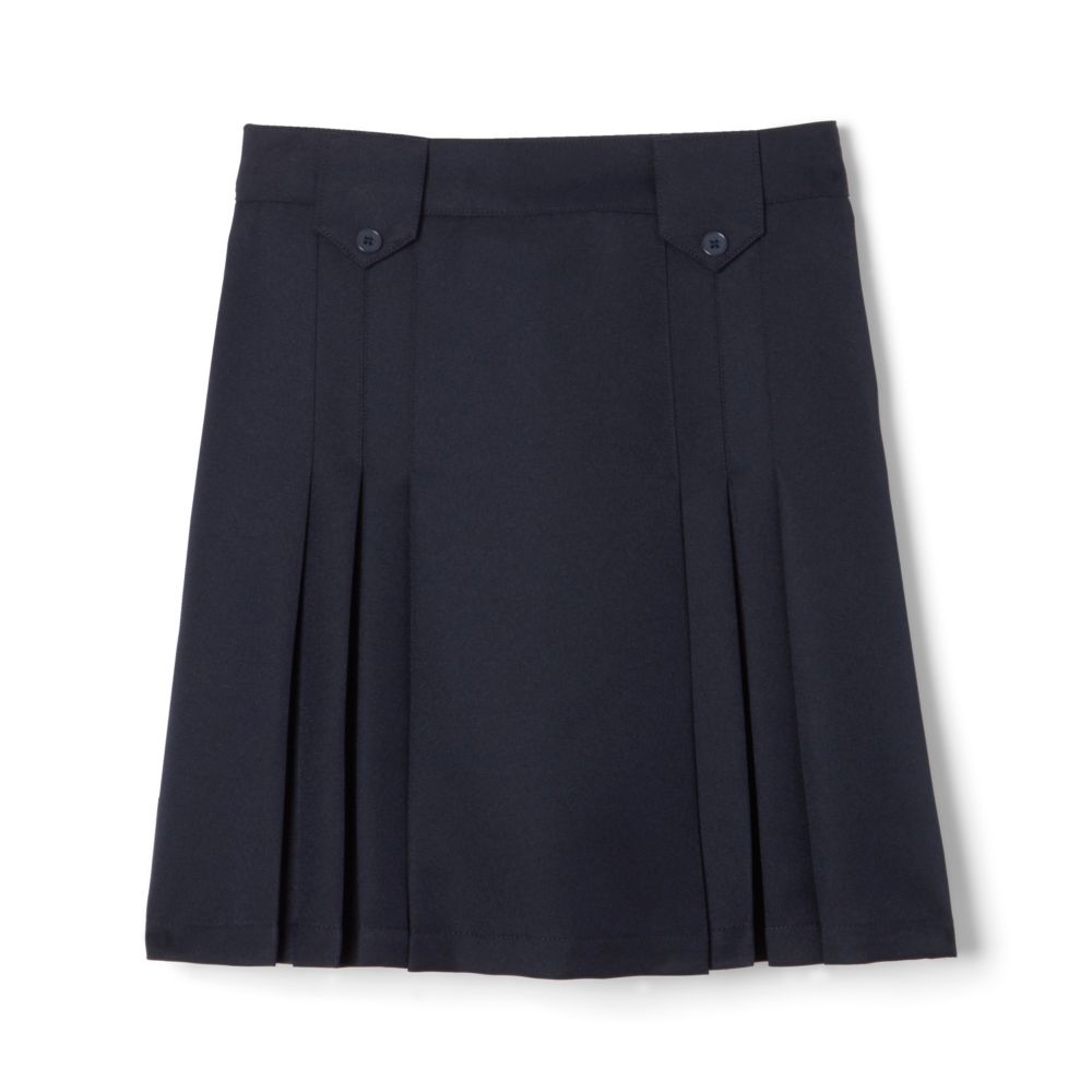 For all-day comfort, check out this pleated skirt from French Toast. It features a side zipper and pleats in front. Two tabs with buttons accommodate a belt, but also look stylish alone.100% Polyester Machine Wash Cold Imported