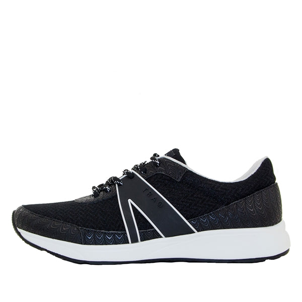 Crisscross your way to fitness with the all-new TRAQ Qarma smart shoe in Paths Black by Alegria. This revolutionary new smart sneaker utilizes Alegria's latest Q Chip technology to track every step you take as you take it. The Q Chip then seamlessly sends your step count to the Alegria TRAQ smartphone app so you can track your progress with the tap of your finger. The Q Chip never needs to be charged and is guaranteed to last the lifetime of your Qarma smart shoe.