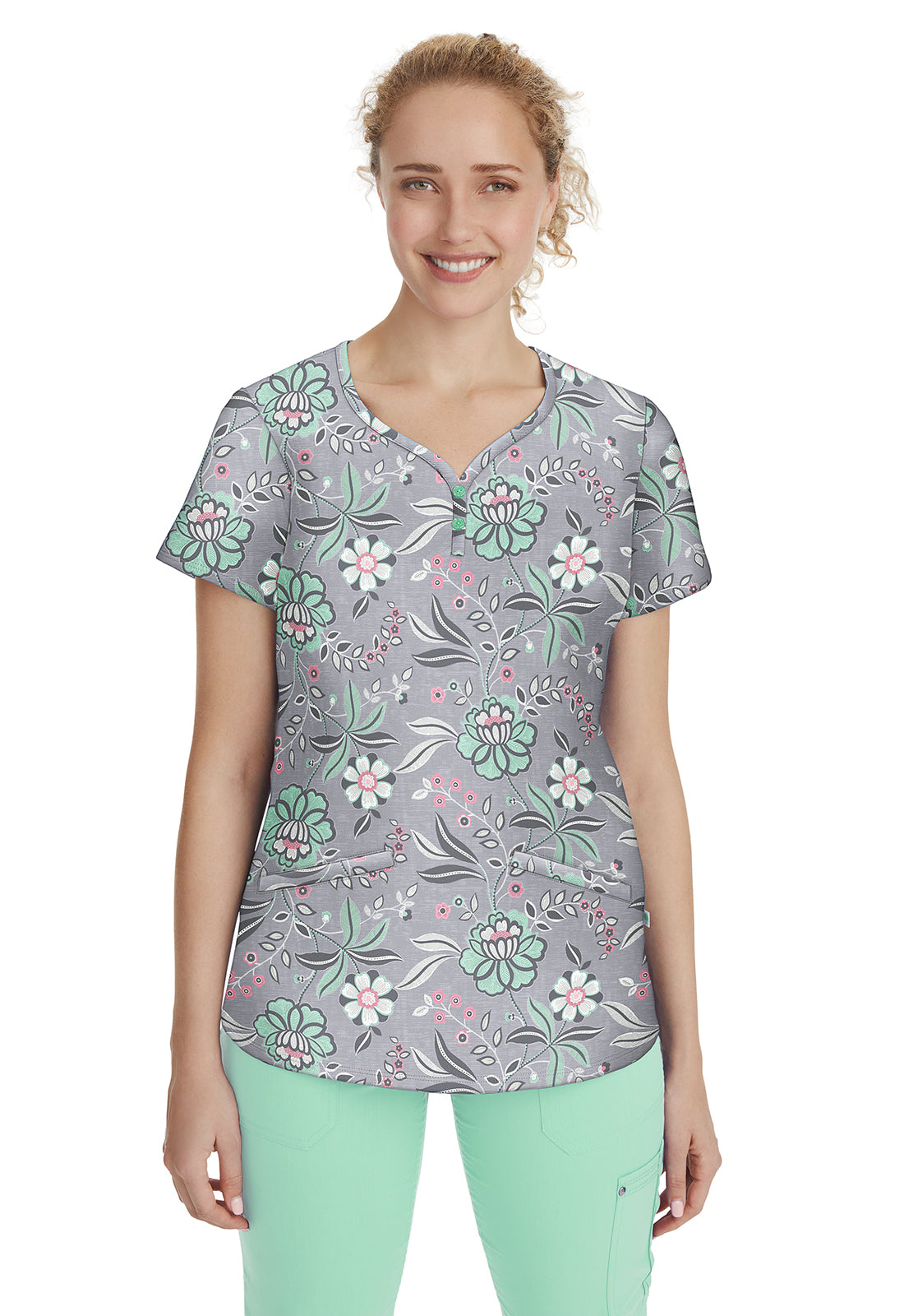 Clearance Healing Hands Premiere Coolmint Isabel Printed Scrub Top