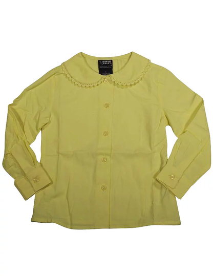 French Toast - Girls Long Sleeve Peter Pan Blouse with Lace Trim Collar, Yellow, The Peter Pan Collar Blouse with Lace Edge Detailing on the Collar Gives a Little Flair to our Original Classic, Wrinkle No More fabric and Center Placket (right over left) Button Closure, Cotton Polyester Blend, Imported