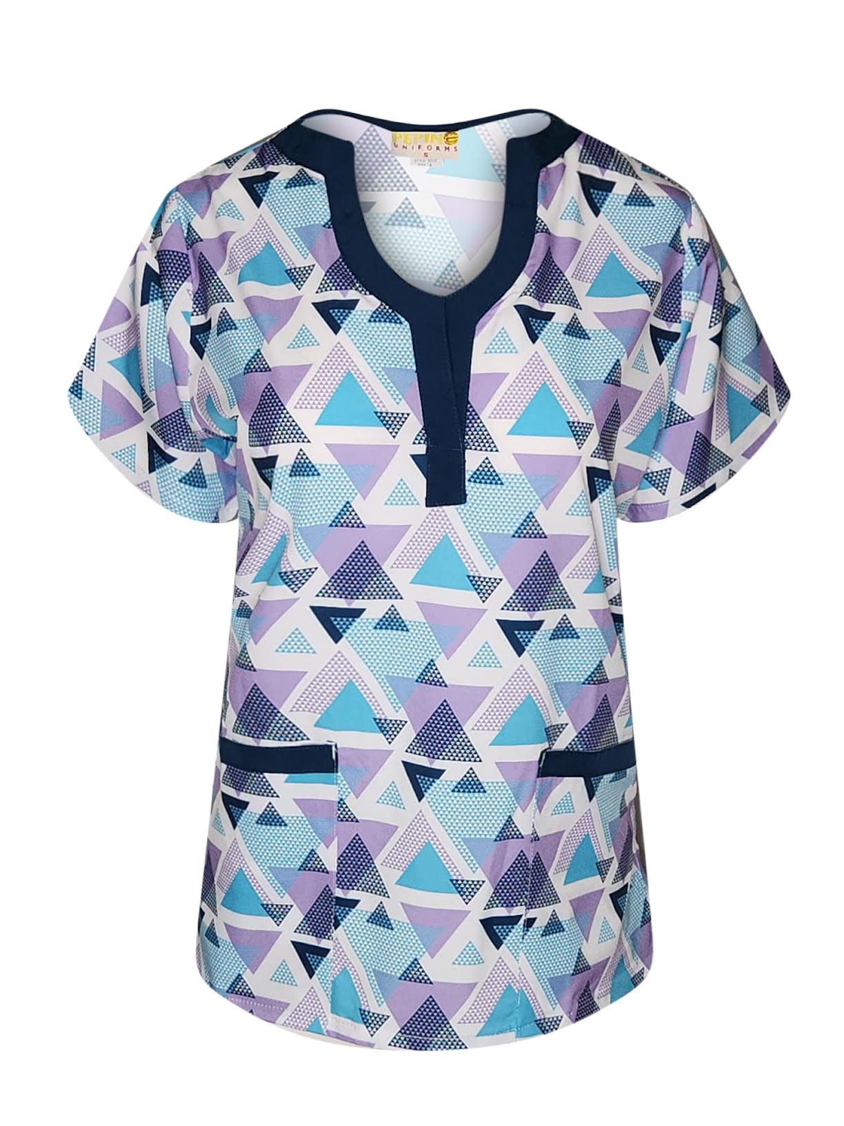 Pepino Uniforms Printed Turquoise Linked Triangles U-Neck Scrub Top