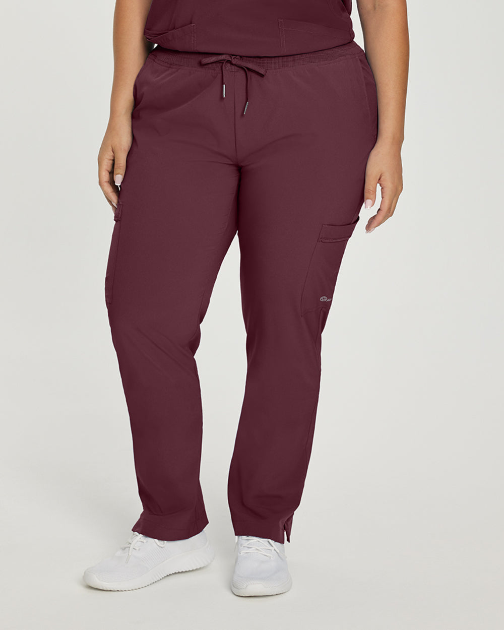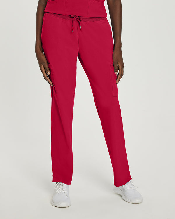 Our White Cross FIT women's straight-leg cargo scrub pants are breathable, fade resistant, offer a 4-way stretch, and are moisture wicking. With a contemporary slim fit that's contoured to conform to your body and complement your shape, these pants have a mid-rise elastic mesh waist with a drawstring for a secure for your most active shifts.